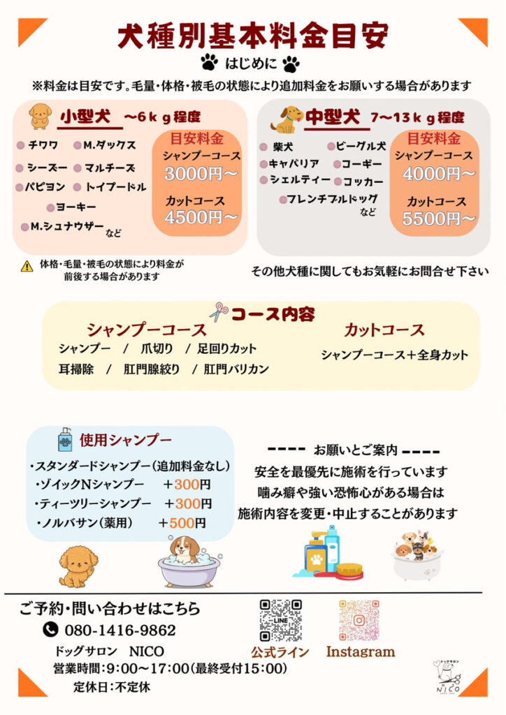 犬種別料金表